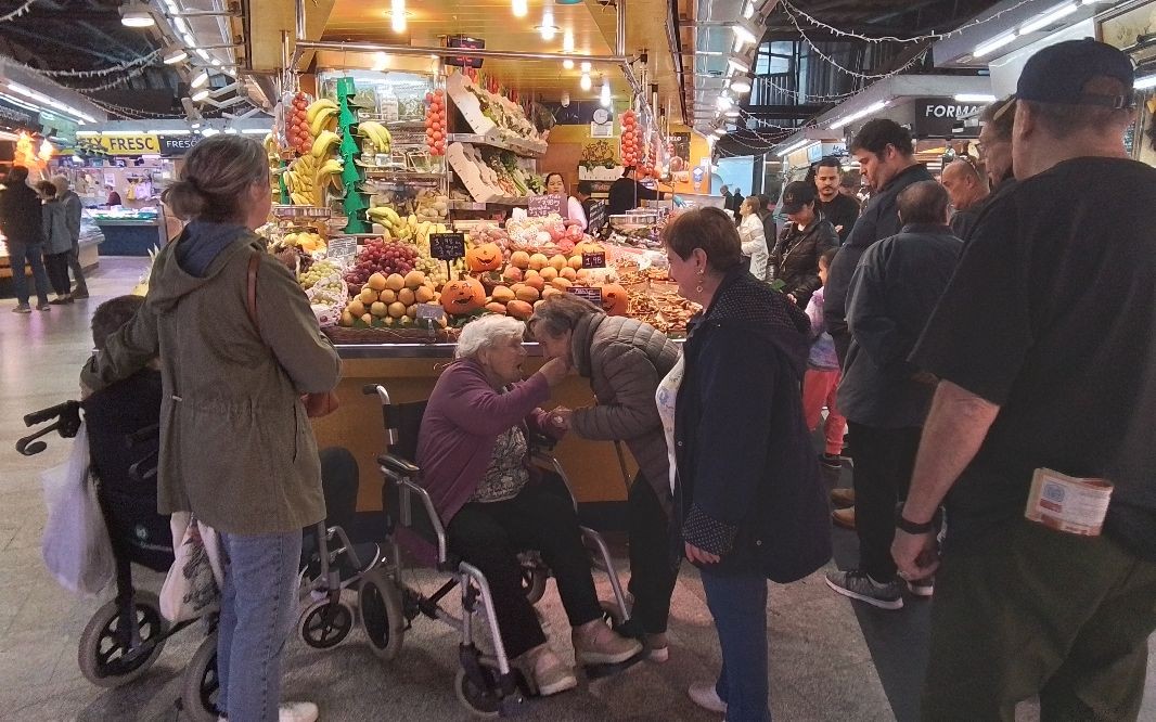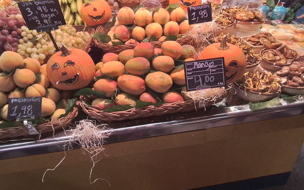 Aquest matí hem anat a comprar al mercat santa Caterina boniatos i castanyes. Ni la pluja ens impedeix sortir!