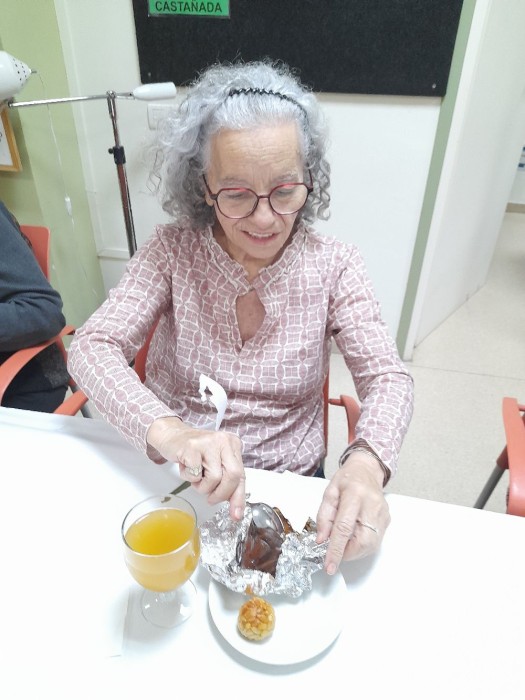 Un día como hoy no podía faltar la visita de nuestras castañeras y una merienda muy tradicional: boniatos y panellets.