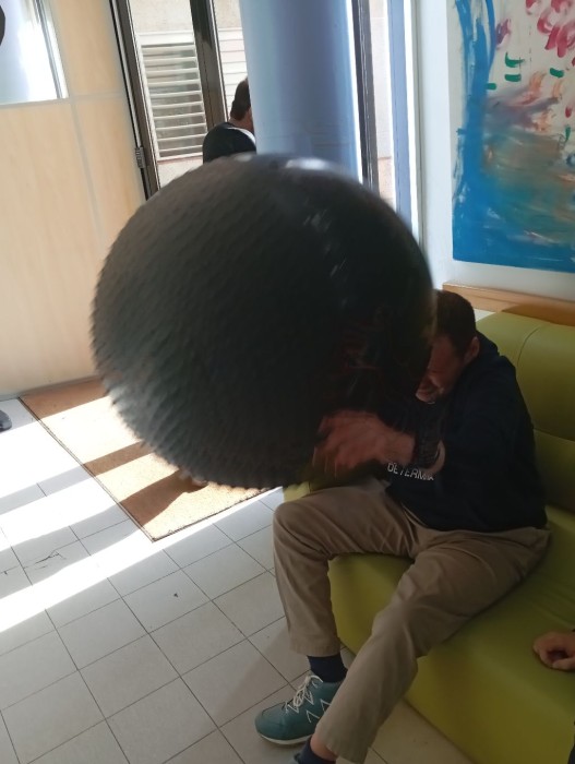 Exercitem el cos, pujant, baixant i llençant-nos la pilota