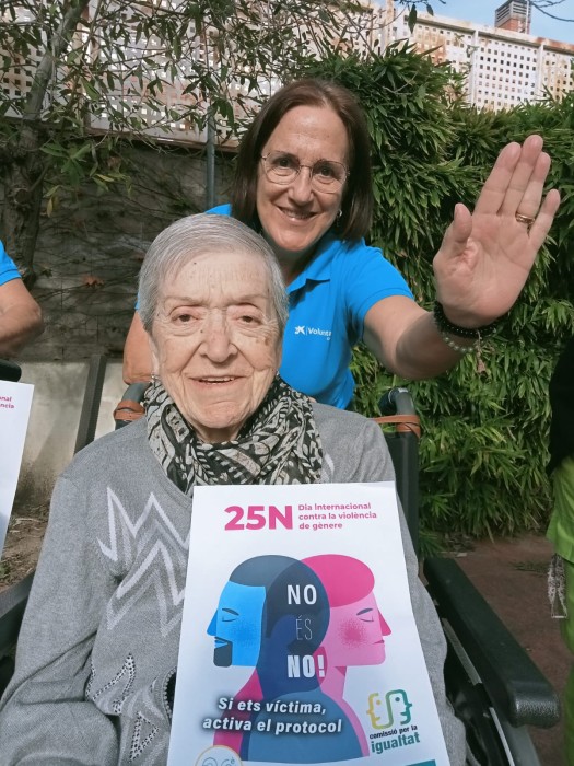 Avui a L'Onada Riudoms hem commemorat el 25 N, Dia Internacional Contra la Violència de Gènere, conversant sobre aquesta temàtica, compartint experiències, reflexions i opinions diverses de les persones usuàries. Amb la col·laboració de les voluntàries del Programa de Voluntariat de Caixabank, també hem ensenyat a les persones participants quin és el gest que podem fer amb la mà per a denunciar qualsevol tipus de violència de gènere.