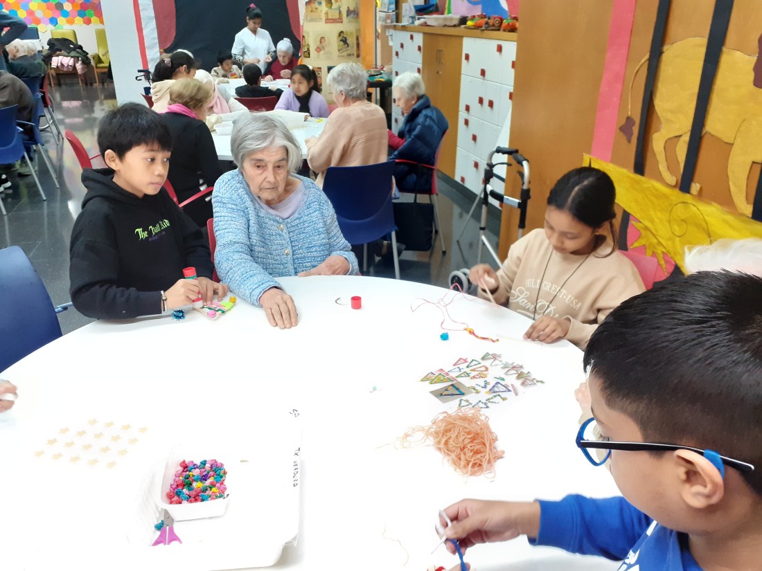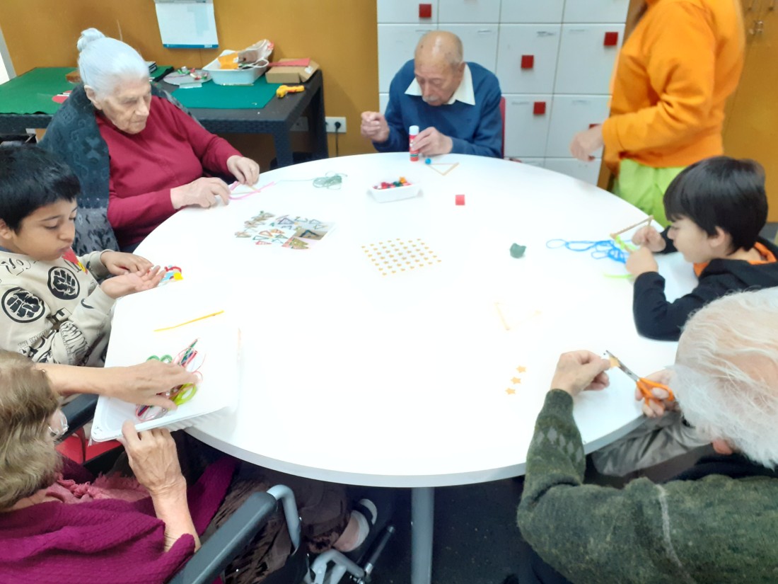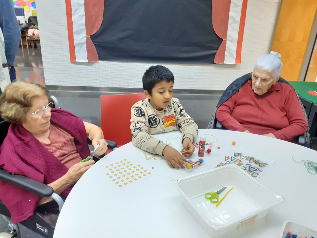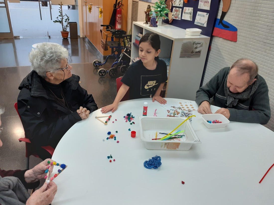 Els nens i nenes de la classe de Les plantes han vingut per compartir una estona amb nosaltres i fer una manualitat que vendrem a la paradeta soldària de La Marató
