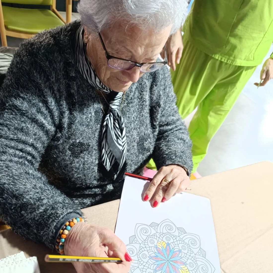 El pintar els mandales ens aporta millora de la creativitat individual, manté a ratlla els pensaments i les emocions negatives ja que es fa concentrar i tenir tora l atenció al dibuix que tenim al davant.