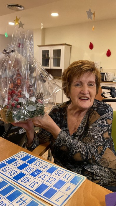 La jove de la Rosario Gomez ens va obsequiar amb uns centres de taula fets per ella per regalar de premi al Bingo. Les guanyadores van ser l'Àngels i la Montse.