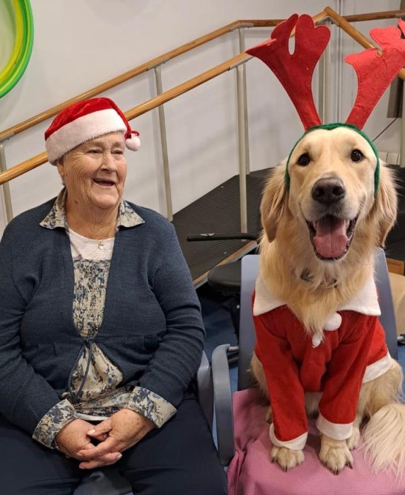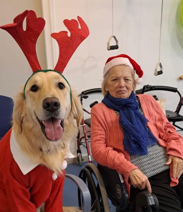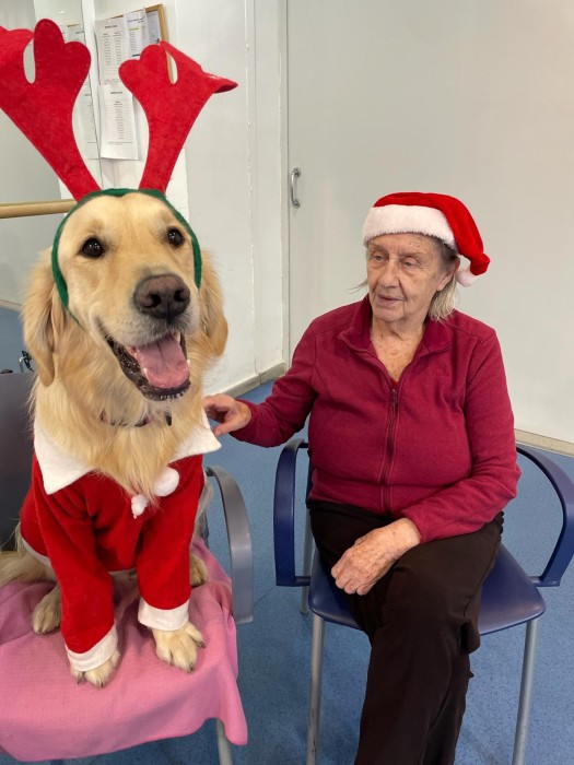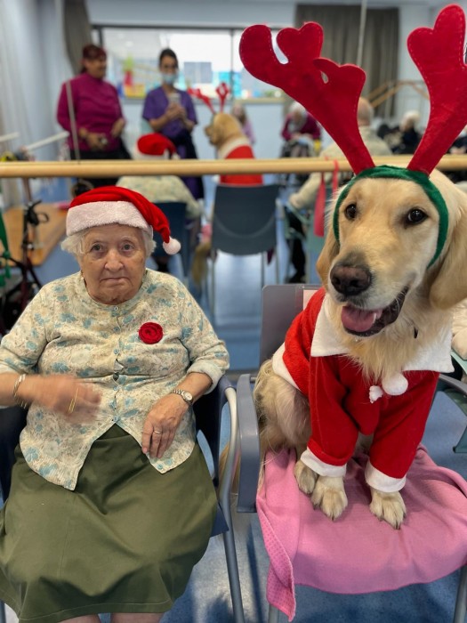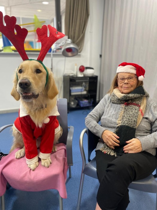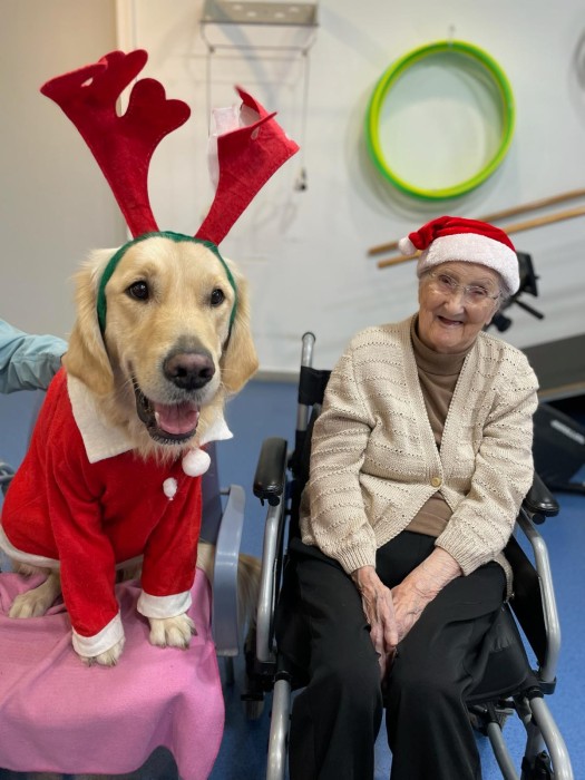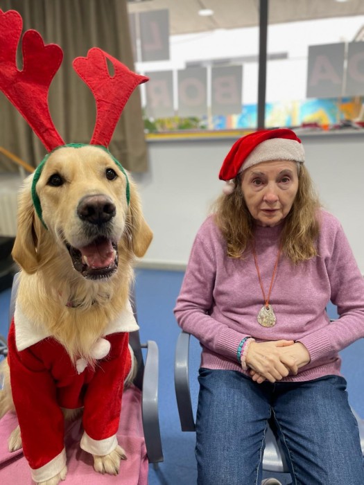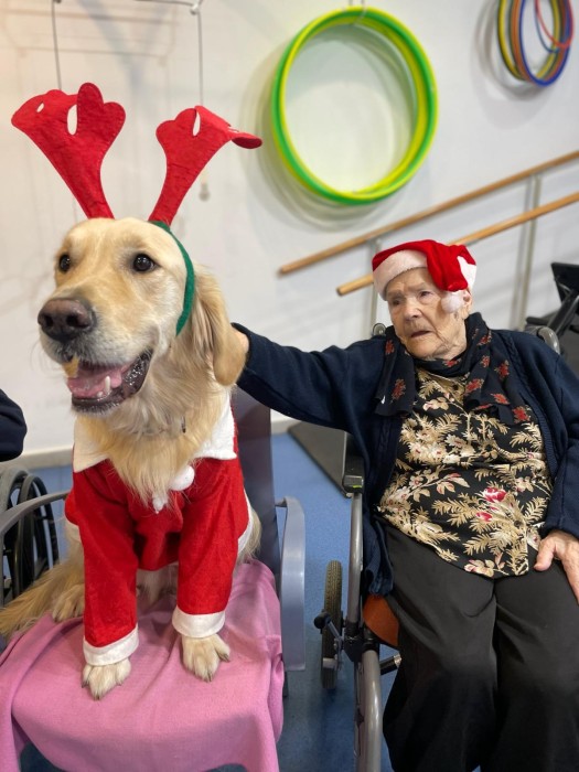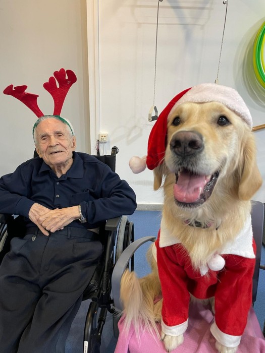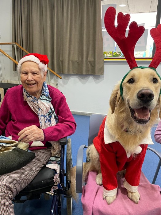 Teràpia assistida amb la Satie! Hem pogut compartir un matí de teràpia amb la Satie on ens hem divertit molt, l'hem fet jugar, hem cantant nadales i ens hem vestit amb complements nadalencs per donar un ambient més màgic. Sempre que ve ens fa passar unes estones ben divertides amb molt d'amor felicitat i alegria!