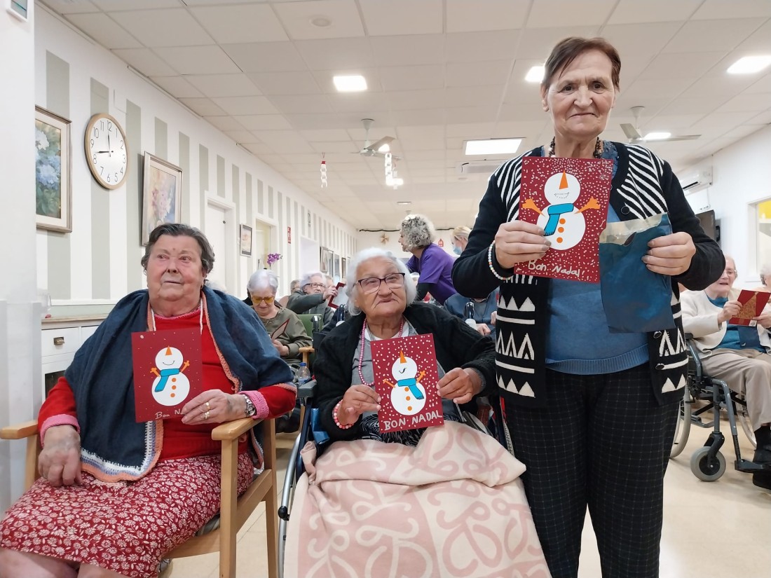 Aquest Nadal hem repartit a les persones residents i usuàries de Centre de Dia unes postals nadalenques precioses elaborades per l'alumnat de l'Escola Cavaller Arnau de Riudoms. Moltes de les postals, a més, comptaven amb poemes o escrits personalitzats, que vam estar llegint en veu alta. Ha estat un detall especialment emotiu i entranyable, que ens ha arribat al cor!