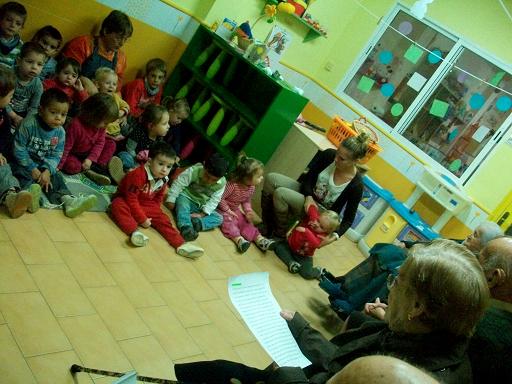 Aquesta tarde els avis de l'Onada d'Alcanar hem anat a contar contes als nens més petites del poble, nens de 0 fins a 3 anys, de la llar d'infants el Patufet, que són els nostres veïns. Ja portem uns dies preparant els contes però ha segut aquest tarde quan hem fet un assaig general. Tots estavem una mica nerviosos però no hi havia dubte que ho fariem molt bé. Desprès de berenar hem marxat cap a la llar, un cop allí, hem saludat als nens i ens hem presentat. Desprès els hem llegit tres contes : El Cigronet, La rateta que escombrava l'escaleta i els Tres Porquets. Els nens han estat molt participatius i s'han portat molt bé. En acabar com a mostra d'agaïment ens han ballat la cançó de la tardor i de la castanyera. La veritat que ens ho hem passat genial, tant grans com petits, i hem decidit que no podem tardar molt en tornar a veuren's.