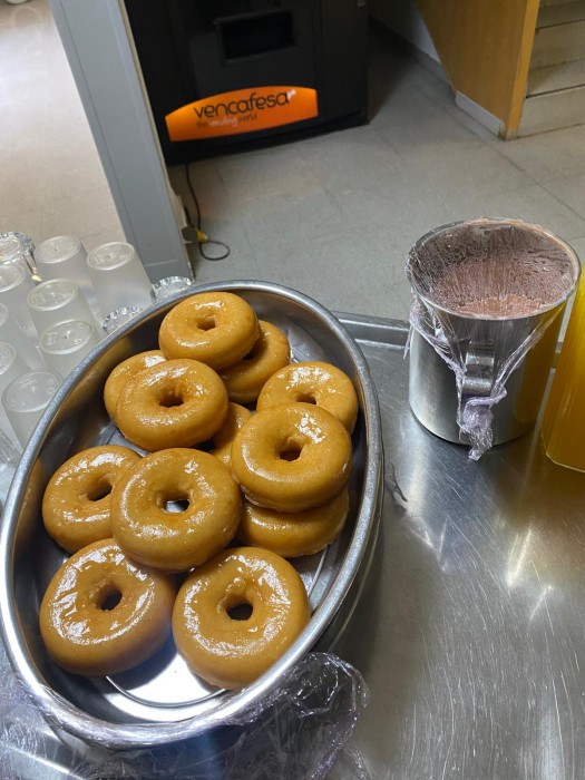 Vam gaudir d'un berenar boníssim!! Donuts amb xocolta desfeta!!!!
