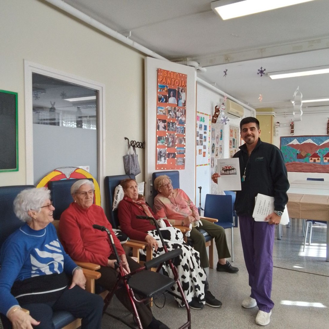 Taller sanitario sobre alimentación saludable, que tuvo como objetivo promover hábitos alimenticios saludables y prevenir enfermedades relacionadas con la alimentación en personas mayores.