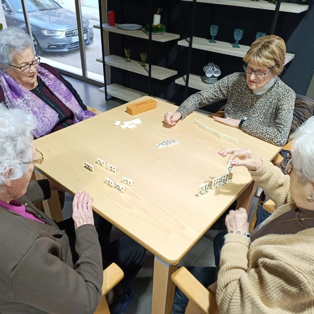 Després de dinar ens agrada pasar l'estona jugant amb els companys: parxís, dominó i cartes sempre triunfen.