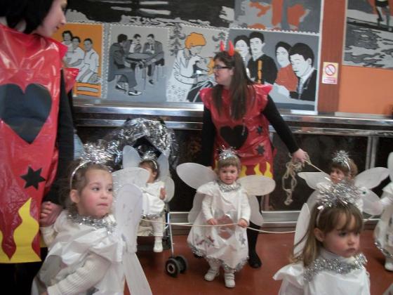 Vam veure la comparsa que van fer els xiquets de la guarderia i després uns quants d'ells ens van venir a visitar al centre, va ser una visita molt esperada ja que els nostres avis tenien moltes ganes de abraçar-los i dir-los lo guapos que anaven.