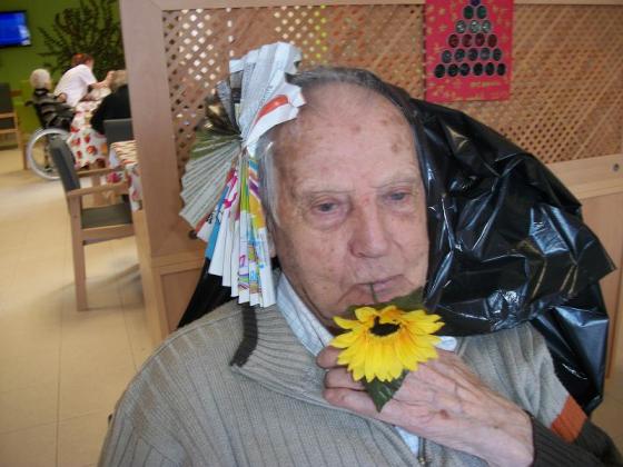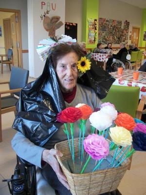 Els avis van estar preparant flors, ventalls, abaloris, per poder vestir-se de sevillanes. Van pintar màscares i les vam utilitzar per decorar el centre.