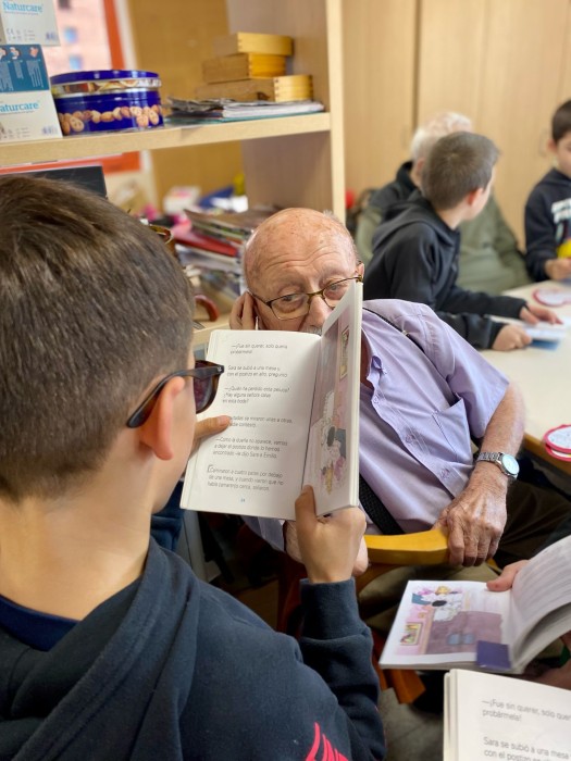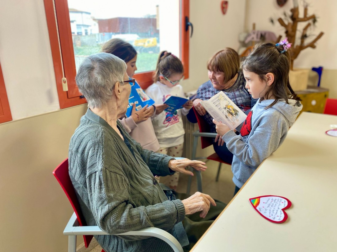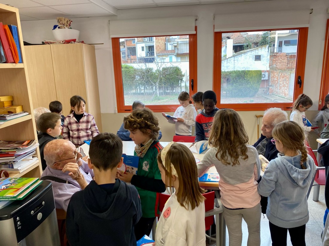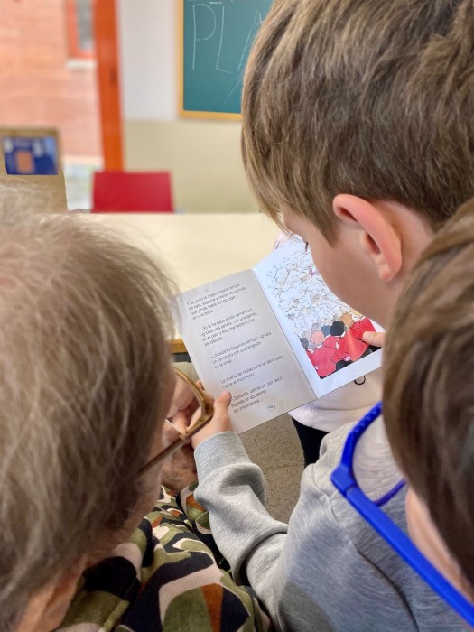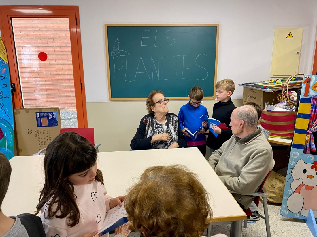 Ahir a la tarda vam rebre una visita molt especial, els nens del col·legi Mare de Déu de Montserrat, van venir a lleguir-nos un llibre, a més ens han portat unes bonoiques tragetes en forma de cor amb dedicatòries fetes per ells.