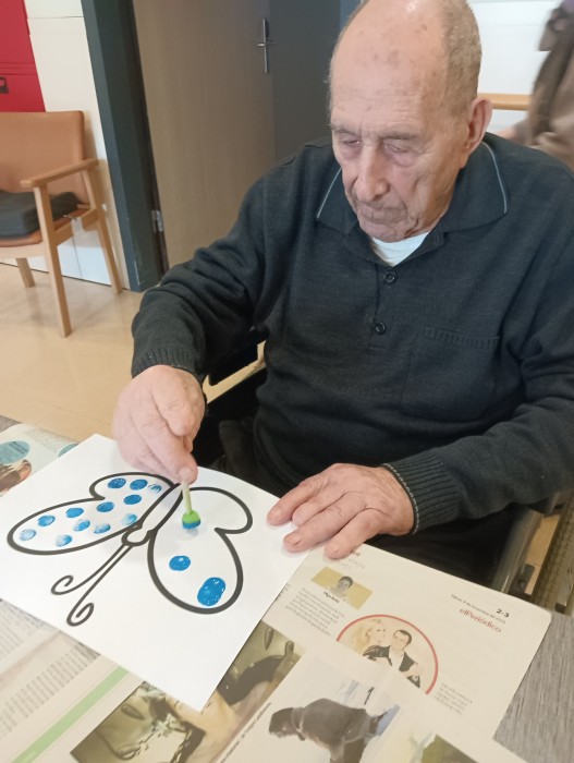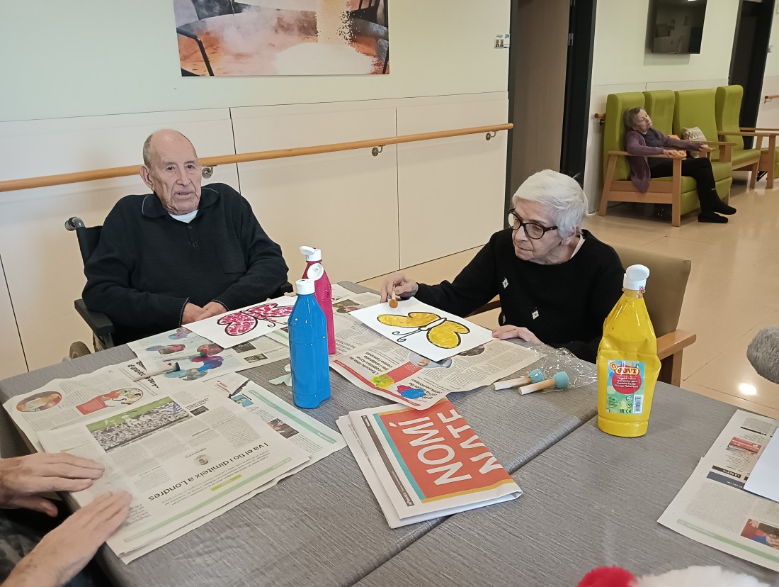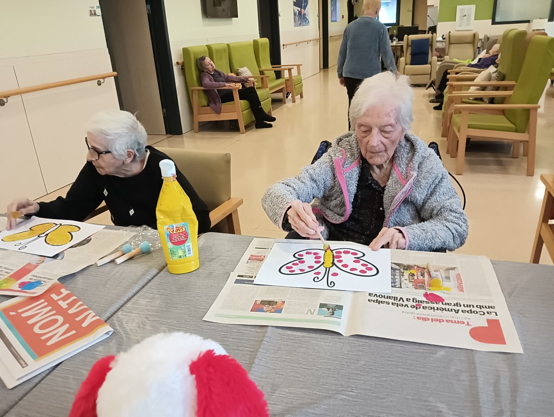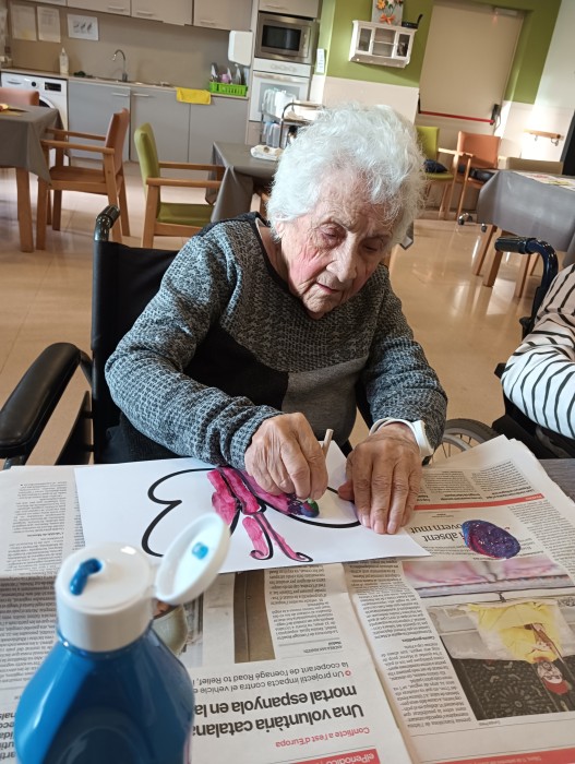 Taller de pintura a la segona planta, amb punteig per decorar el menjador de primavera.