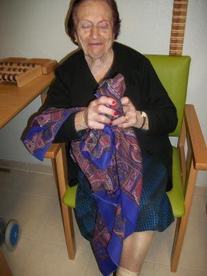 A l'Ampolla treballem les teles, que és el tacte, teles rugoses, teles fines, teles rasposes, teles de seda...treballem la vista amb els colors, les formes, els “brillos”. És el mon de les textures i el mon dels colors.