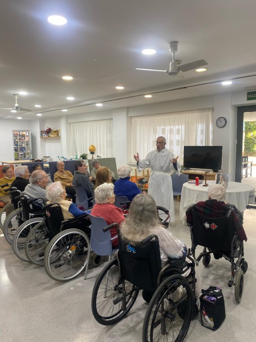 El primer divendres de cada mes fem eucaristia per a tots els reisdents que hi volen assistir. A tots els que participen els hi agrada molt poder tenir aquesta cerimonia almenys una vegada al mes.