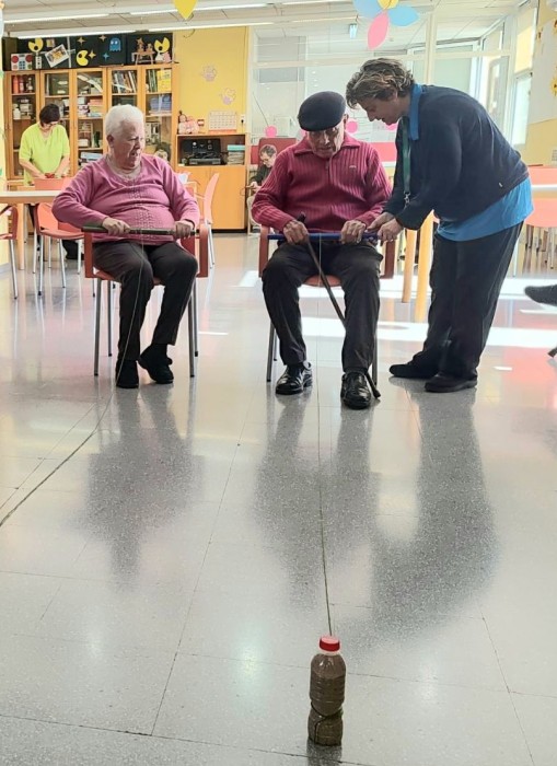 Hoy hemos trabajado la motricidad fina de las manos a través de un juego muy original: la carrera de botellas.