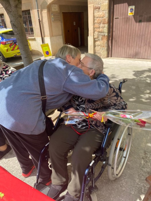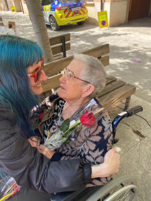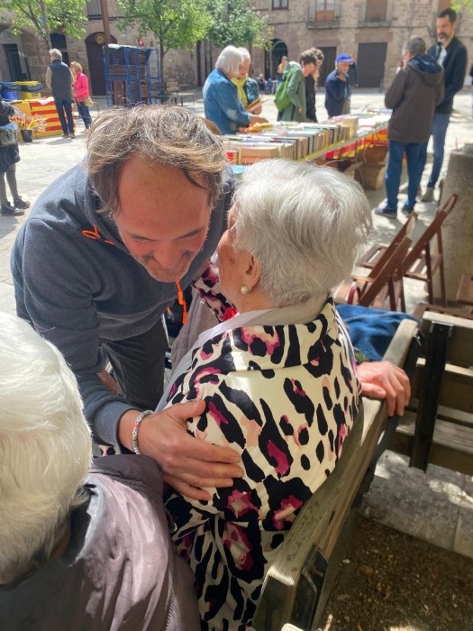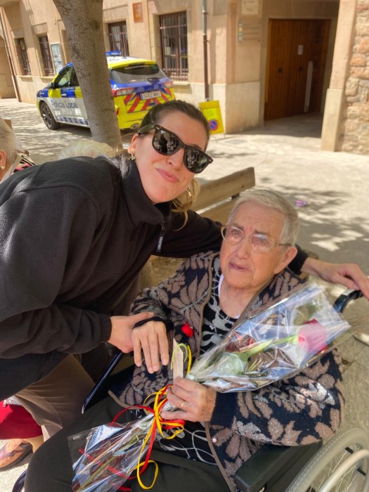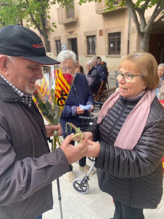 Com cada any a la plaça Gran hem repartit roses a canvi d'abraçades i atenció