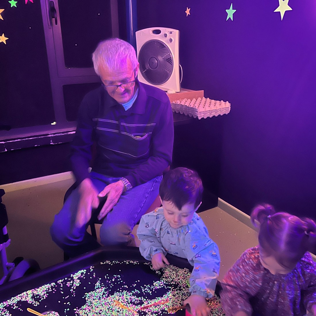 Vam visitar la llar d’infants i vam compartir una estona màgica a la sala Snoezelen amb els més petits.