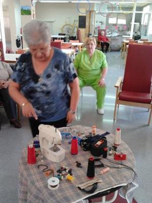 Cosint Records, a través d'objectes, hem fet un viatge al que ha estat la seva feina de tota la vida. Veure els objectes ens han ajudat a recordar la seva utilitat, com i perquè es feia servir les coses, hem parlat de diferents tipus de traus, pegats, butxaques. una de les participants, comentava que havia cosit el vestit de núvia de la seva filla.