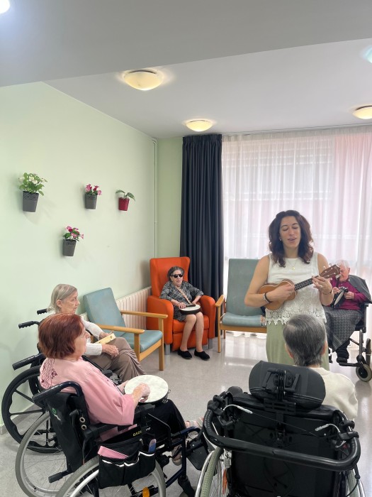 Aquest dijous hem pogut gaudir d'una sessió de musicoteràpia més lúdica, hem tocat diferents instruments i després hem jugat a jocs musicals i altres més dinàmics. La música va molt bé per treballar la reminiscència gaudint de cada moment.
