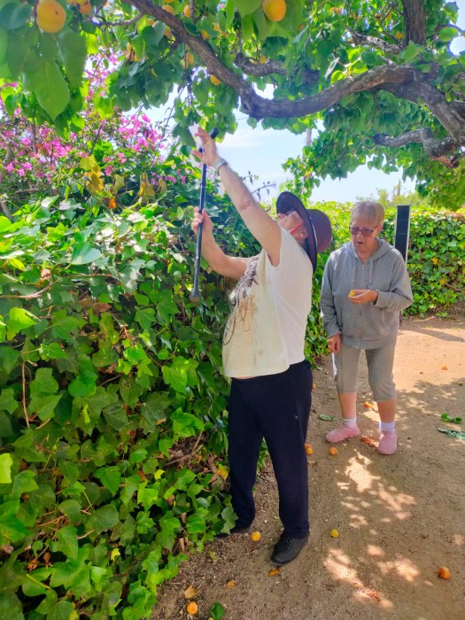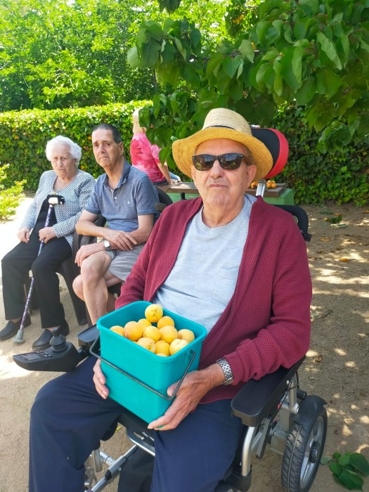 Aquest matí, els usuaris de centre de dia, han sortit al jardí a prendre el sol. Han collit albercocs i els han tastat. Estan boníssims!