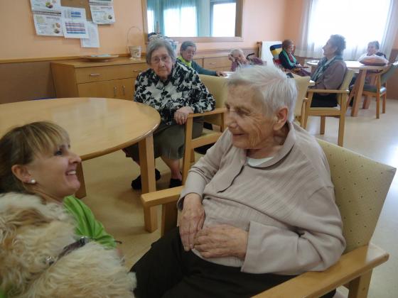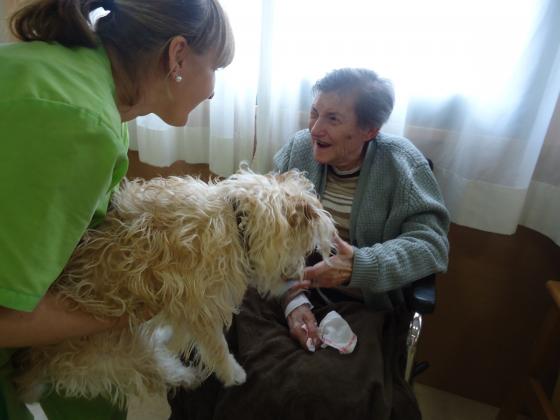 Com sabeu, a Riudoms ens agraden molt els animals i per això aprofitem totes les oportunitats per portar a les nostres mascotes per tal de que els residents també les puguin gaudir. Fa uns dies, va ser el torn de "Pelocho", el gos d'una de les nostres auxiliars (Montse Ruberte), que va fer passar una molt bona estona als residents del centre.