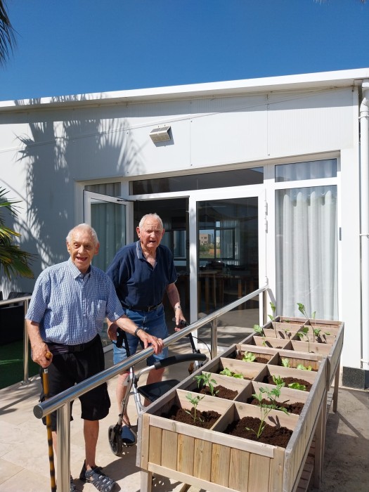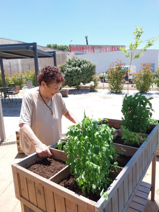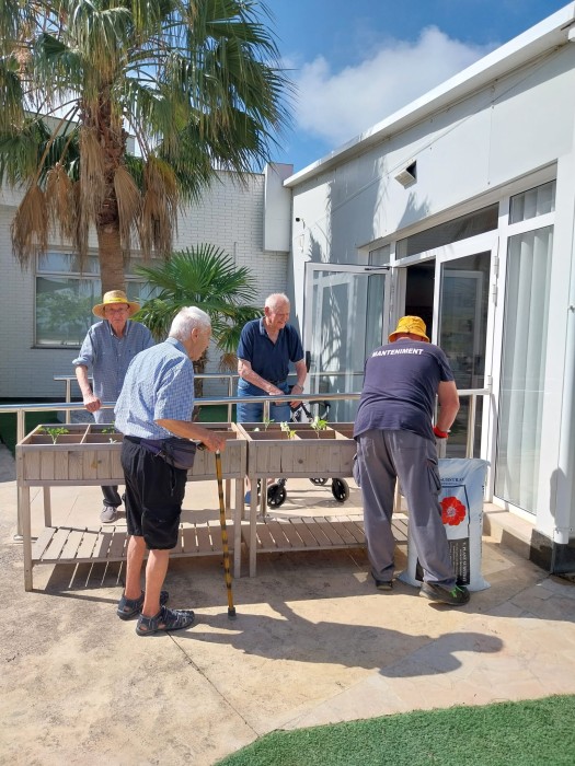 Este matí ha vingut Àlvaro, de manteniment, a preparar-nos el jardí terapèutic. En un dels jardins hem fet hort i, en l'altre, plantes aromàtiques. Ara a cuidar del jardí i l'hort per treure'n el fruït i poder fer tallers sensorials i estimulatius. Ah, i menjar, claro!