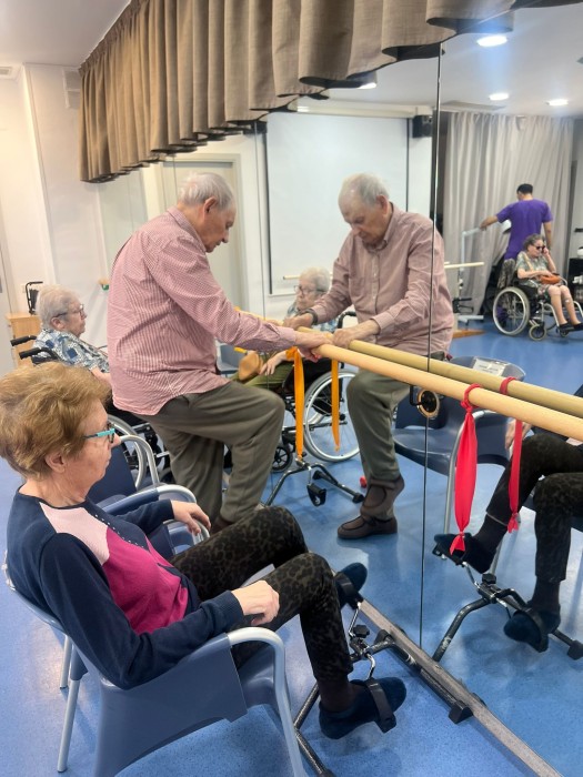 Cada setmana fem diferents sessions de gimnàs on ens movem, ens mantenim actives i ens ho passem molt bé amb l'ajuda dels fisoterapeutes de la residència.