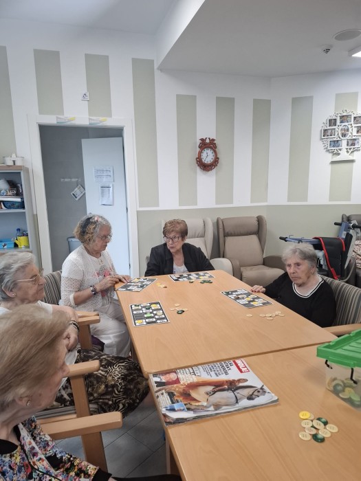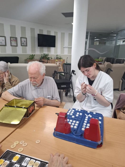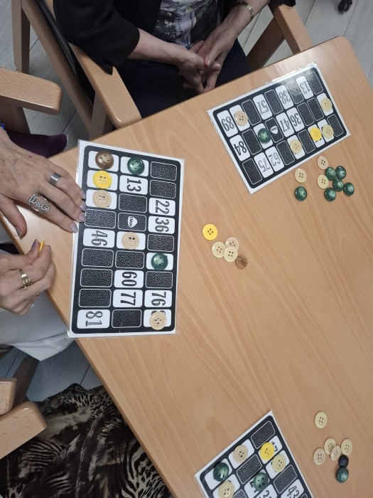 Avui pel matí hem estat fent una partida de bingo tots junts, és un joc que ens ajuda a mantenir la concentració, l'atenció i la memòria immediata!