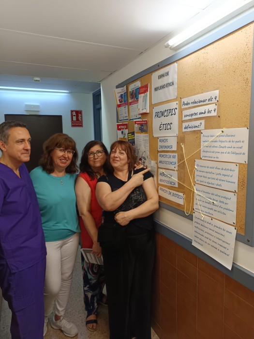 Avui, aprofitant la reunió d'Equip hem fet formació de filosofia de PAI i hem renovat l'Espai d'Ètica amb el plafó interactiu d'aquest mes: "Els principis Ètics".