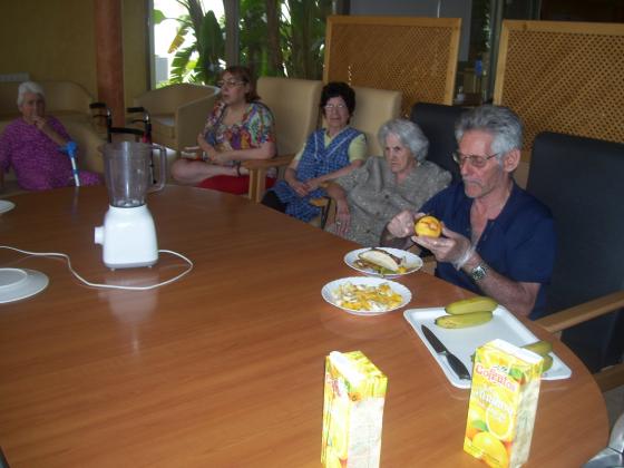 Al taller d'estimulació sensorial hem fet batut de fruites, primer les hem olorat, hem parlat dels beneficis que tenen cada una pel nostre cos, les hem trossejat, les hem posat a la liquadora i hem agefit el suc i.... TAXÀN!!!!! Batut de fruites fresquet!!! BONISSIMMMM