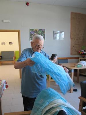 Mateu es va encarregà de seleccionar-les i tallar-les a la medida, Rosita les va cosir per els dos costats, Virginia va col·locar el llaç i entre tots vam confeccionar aquestes bosetes que os mostrem.
