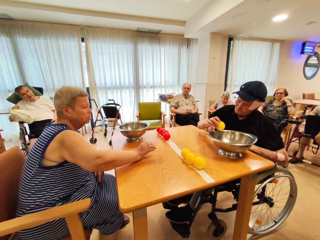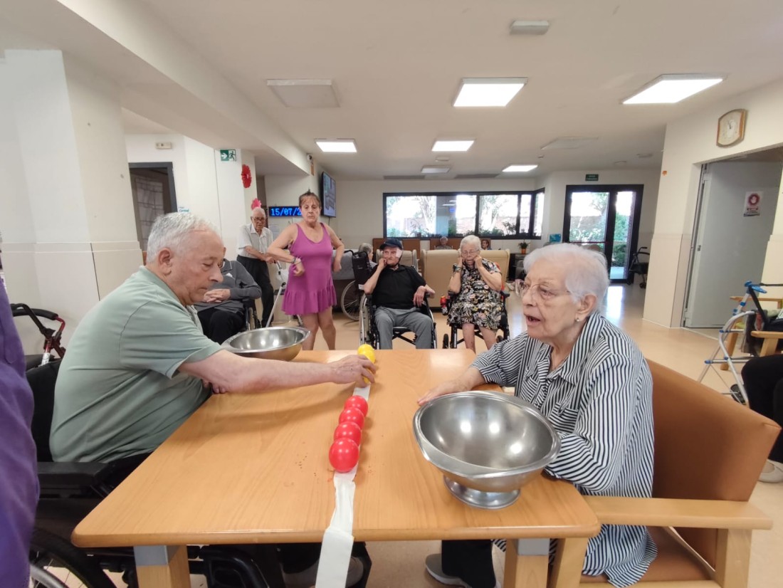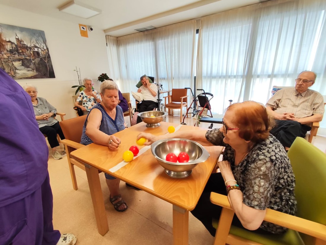Competència de recollir boles de colors.