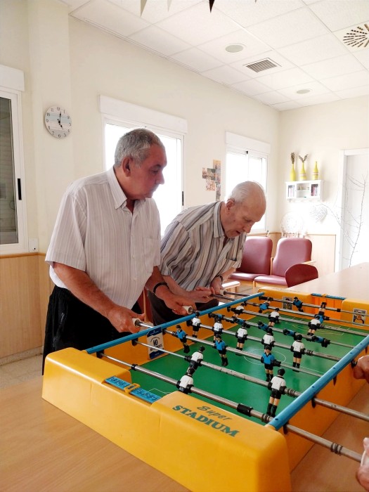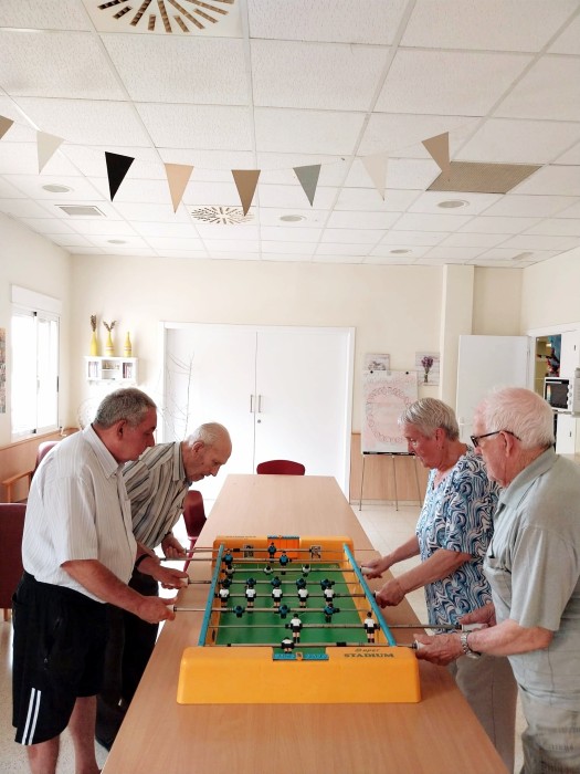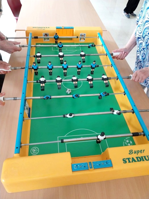 Fotos del torneig de futbolí. Hem descobert que Ramón és un prodigi jugant i s'ha convertit en el jugador estrella. Angelina ho ha donat tot i cada vegada que marcava gol ens feia riure a tots. Santiago ha jugat en equip i li ha agradat molt. Miquel, Paco i Miralles ho han donat tot i han animat els partits.