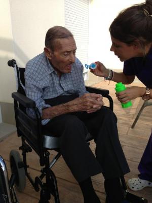 A Deltebre hem fet un taller molt divertit, on els avis havien de bufar per a fer burbujetes, per a molts de ells no era la primera vegada que ho feien, i altres que no sabien com fer-ho, ens han explicat que era una diversió quan eren menuts i els ha agradat tornar a repetir-ho.