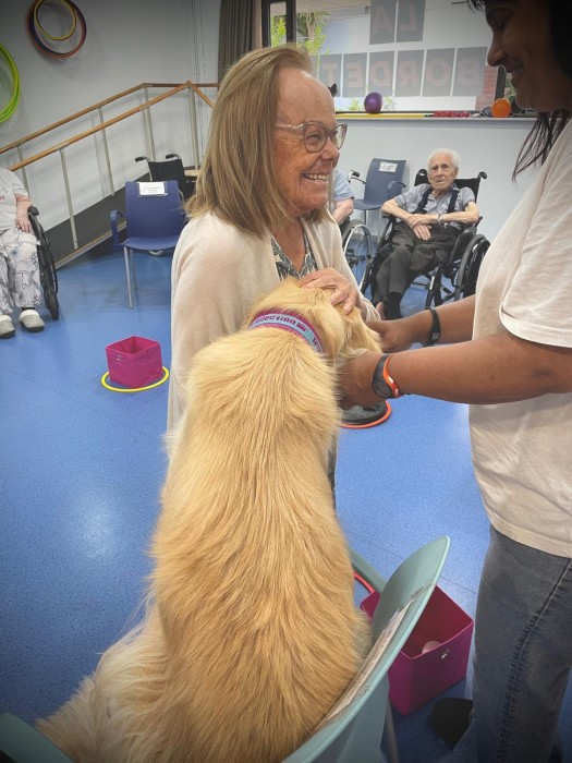 A la nostra residència, cada dimecres gaudim de sessions de teràpia amb gossos, una activitat que ens aporta alegria, calma i molts moments especials.