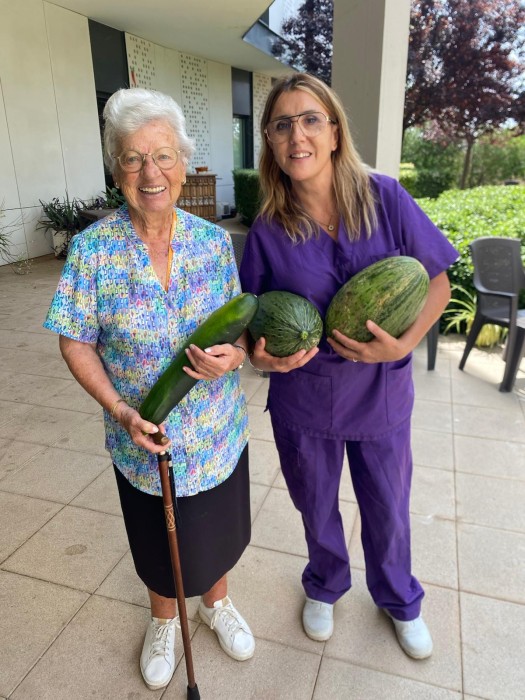 Als experts de la residència els ha semblat que avui ja podíem collir aquests dos melons i aquest carbasso. Ja us direm si han sortit dolços i bons!!!