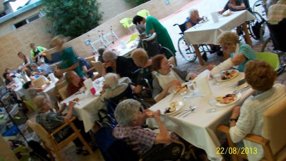 La setmana passada a L'Onada Alcanar vam fer un sopar a l'exterior aprofitant el bon temps i la terrassa del nostre centre. Els nostres avis feia temps que ens demanaven un sopar original i com tots sabeu els seus desitjos són ordres. Vam fer una torradeta i tots els avis van gaudir moltíssim. I per acabar el sopar d'una forma dolceta vam celebrar els aniversaris del mes d'agost. Així que vam acabar el soparet amb bona coca. Mireu quines cares de Felicitat!