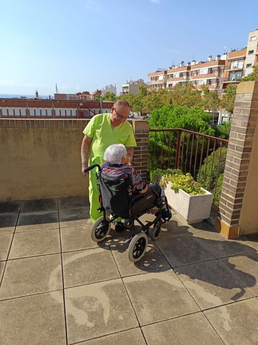 A Parc Serentill, aprofitem els espais exteriors per cuidar-nos i gaudir del dia a dia. Sortim a les terrasses i al jardí per regar les plantes, passejar una estona, olorar les flors i notar la brisa. Ens toca el sol i ens ajuda a agafar vitamines. Compartim converses, moments tranquils i activitats a l’aire lliure. Són espais que ens fan sentir bé i connectats amb la natura.