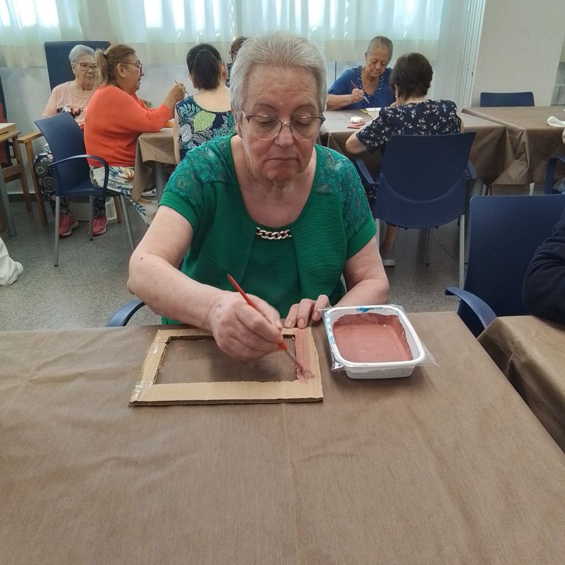 Esta mañana nuestros usuarios han estado realizando unas manualidades, en base al recorte, cuidado del material, y la pintura de diferentes colores, han hecho marcos para nuestra actividad decorativa de otoño.