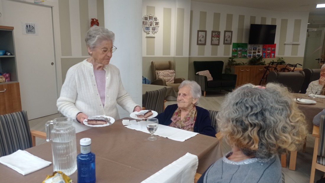Avui la nostra usuària Pilar volia celebrar el seu sant que va ser ahir amb tots nosaltres, ens ha portat dos pastissos que hem gaudit tots junts.