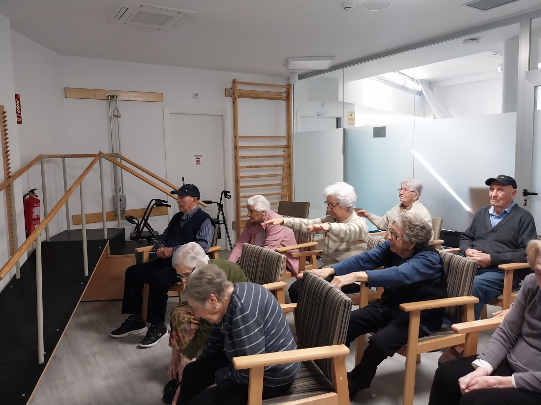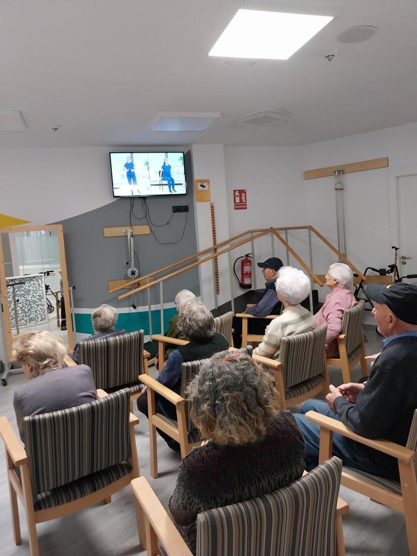 Avui hem fet gimnàstica d'una manera una mica diferent, amb la televisió, l'activitat ha consistit a seguir els passos de la noia del vídeo.