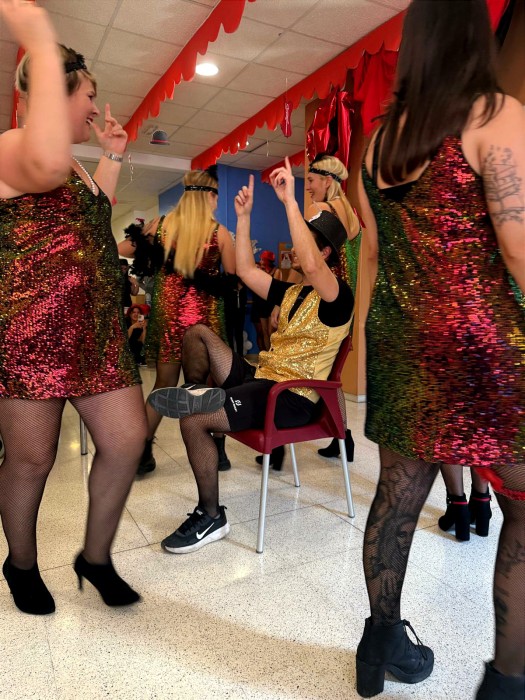 En l'aniversari vam fer una actuació ambientada en el Moulin Rouge. Vam riure molt fent els assajos. Vam crear un pas de ball que ens va donar molt de joc, el pavito. És el nostre pas estrella, a més de les voltes giratòries a Gaspar. jijiji
