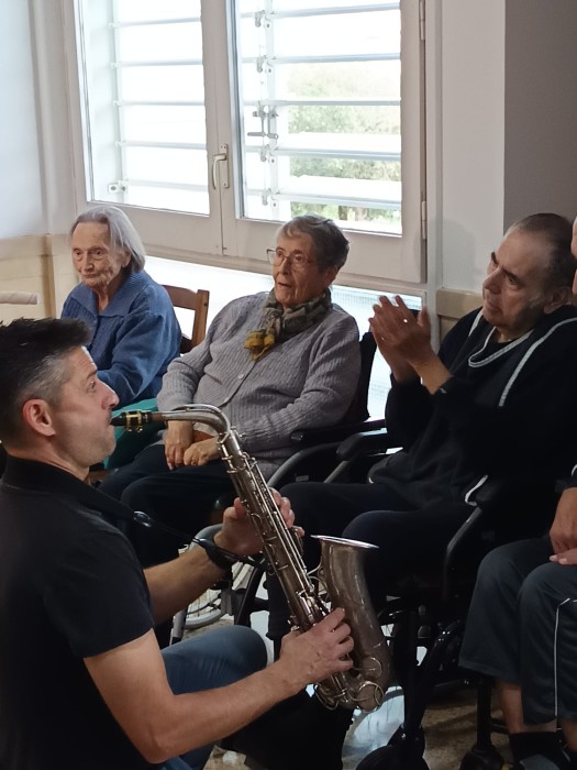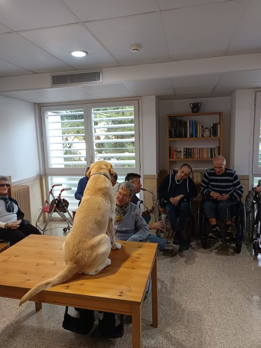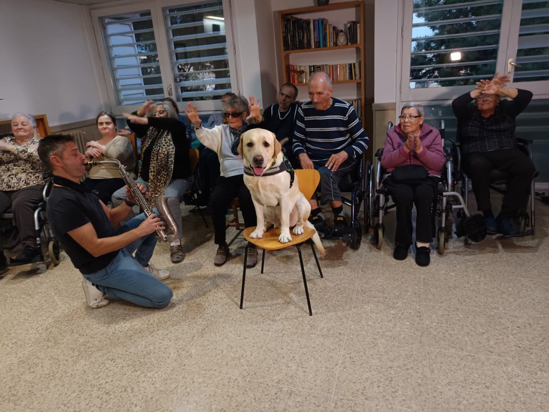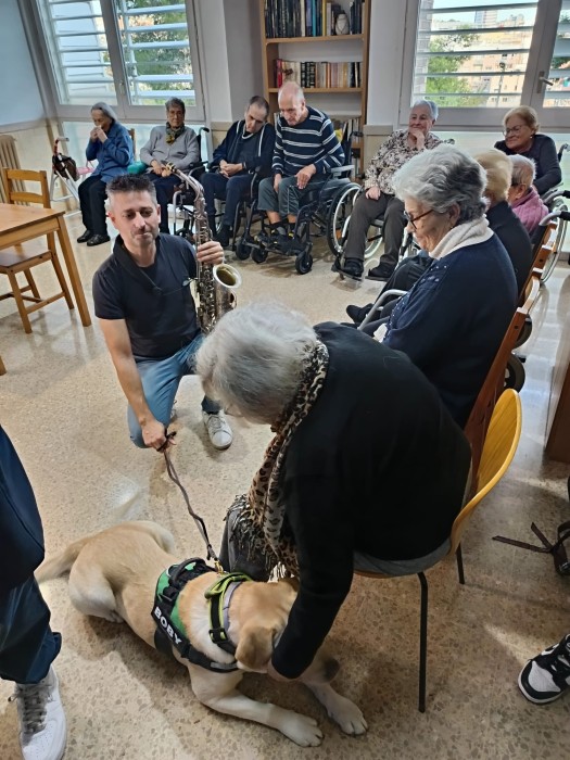 Aquesta setmana hem gaudit d'una sessió de Teràpia Assistida amb Gosos on hem conegut al Boby. Ha estat una activitat molt enriquidora plena de caricies, jocs, riures, alegria i musica en directe amb el saxofonista que ha arribat al cor. Moltes gràcies a: José Codina de @recuerdamealzheimer i a @jjfinquesbadalona2