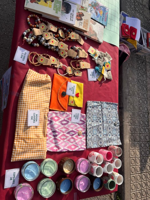 Aquest dijous ens hem fet una paradeta al mercat per vendre les peces a mà que hem anat fent durant aquests dies.
