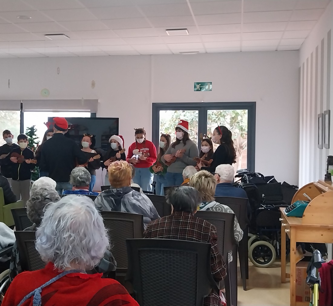 Els alumnes de l’Institut Joan Guinjoan ens han visitat per cantar unes precioses nadales, acompanyats de nombrosos ukuleles. Té molt mèrit l’esforç i la dedicació d’aquests joves, ja que al començament del curs no sabien tocar l’instrument i, malgrat això, han aconseguit interpretar totes les cançons de manera excel·lent.