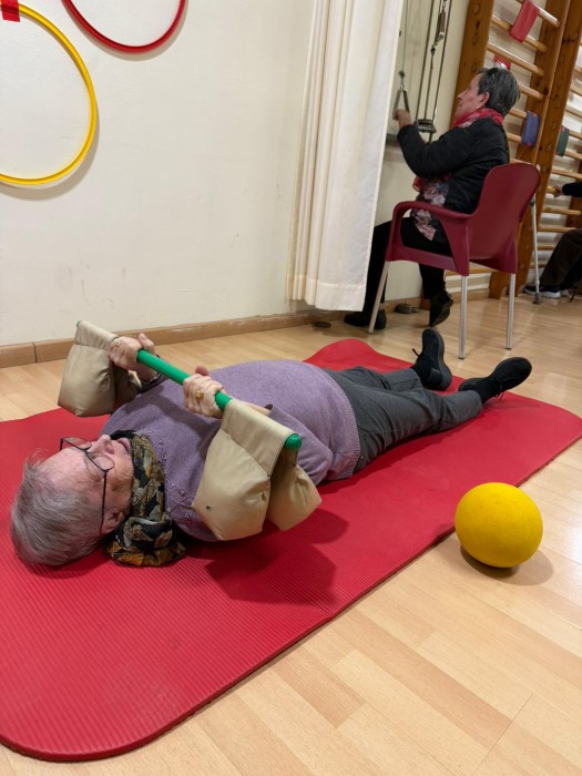 Al gimnàs realitzem sessions de rehabilitació en grup, adaptades a les capacitats i necessitats de cada persona. Tot i entrenar junts, cadascun treballa amb objectius específics i personalitzats: millorar la força, l’equilibri, la coordinació o, simplement, gaudir del moviment i passar-ho bé.