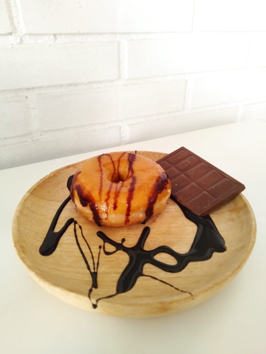 Avui un berenar ben llèpol! Donut amb xocolata! Ens cuidem molt bé ;)