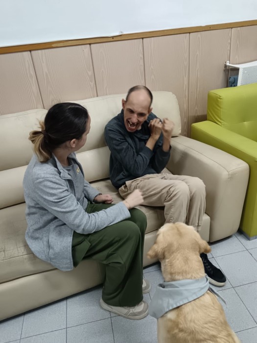 La teràpia amb animals és beneficiosa per a persones amb discapacitat intel·lectual perquè els ajuda a sentir-se més tranquils i segurs. El contacte amb animals afavoreix la comunicació, millora l’estat d’ànim i pot augmentar la confiança en si mateixos.