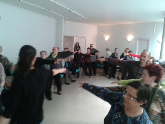 A continuació la fisioterapeuta del centre va organitzar un taller de gimnàstica, on de forma grupal van fer diferents exercicis físics: van treballar l’equilibri, la marxa i la respiració. S’ho van passar molt bé.